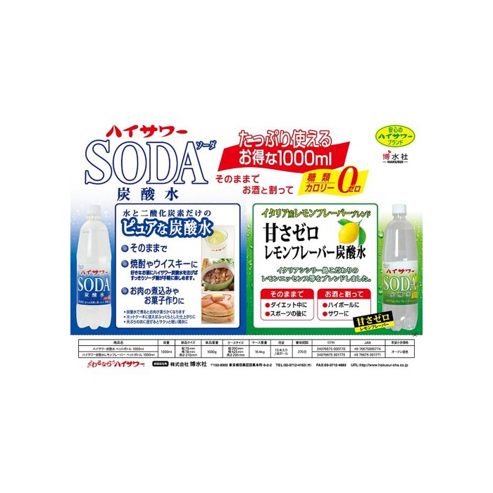 원본상품명: 博水社 ハイサワ 炭酸水 1000ml×15本