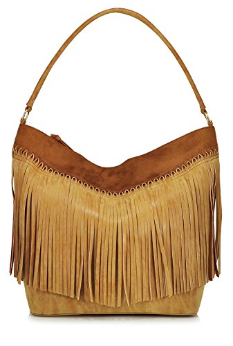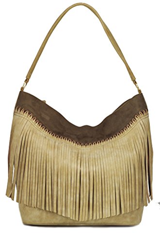 This Spring, Steven introduces the "Gena", a suede fringe hobo. This stylish handbag has a zippered enclosure on the top, a zippered interior pocket inside and a zippered pocket in the back, perfect for easy access for keys and your cell phone. BEFORE PURCHASING, PLEASE COMPARE THE SIZE OF THIS HANDBAG TO ONE OF YOUR OWN FAVORITE BAGS.Feature