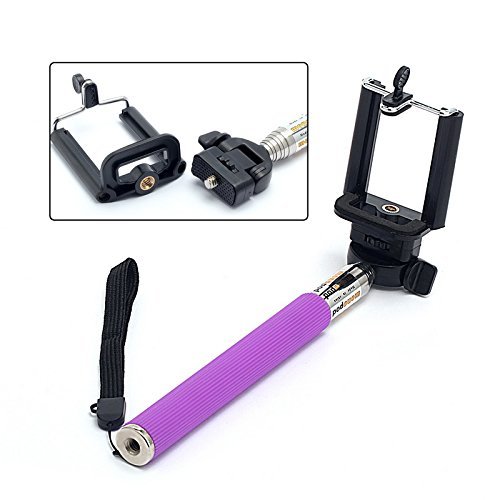 -. Binding : Electronics -. Brand : Generic -. EAN : 0666114379441 -. Feature : LIGHT AND COMPACT - WILL EASILY FIT IN YOUR HANDBAG: Ideal for a spontaneous selfie - at only 11" long when retracted, this stick will fit conveniently into any small bag. / FULLY ADJUSTABLE EXTENSION 11" - 40": Adjust the length of the selfie stick to get the perfect shot. Use a short length for intimate shots and a longer length to cram in more people or background. / UNIVERSAL PHONE HOLDER SUITABLE FOR MULTIPLE DEVICES: You can use the universal phone holder for any device up to 3.25" in width. / 180 DEGREE ADJUSTABLE HEAD: The mount at the top of the selfie stick can be positioned at any point through a 180 degree arc, allowing you to adjust the position according to the specific shot you are taking. / BLUETOOTH REMOTE FOR APPLE AND ANDROID INCLUDED: No need to set up a timer and rush your selfie set-up, the Bluetooth remote will allow you to take the photo when YOU are ready. Connects with Bluetooth 3.0. Compatible with Apple IOS 602 or newer and Android 4.2.2 or newer. No other OS supported. Full instructions are included - some Android users made need to download the free "Camera 360" app from the Google Play store. -. Label : Generic -. Manufacturer : Generic -. PackageQuantity : 1 -. ProductGroup : PC Accessory -. ProductTypeName : NETWORKING_DEVICE -. Publisher : Generic -. Studio : Generic -. Title : Extendable Selfie Stick with Bluetooth Remote By Camkix - With Universal Phone Holder Suitable for Iphone, Samsung, and Other Devices up to 3.25 Inches in Width - Fully Adjustable Handheld Monopod 11" - 40" - Light, Compact, and Easy to Carry with You (Purple with Remote) -. UPC : 666114379441