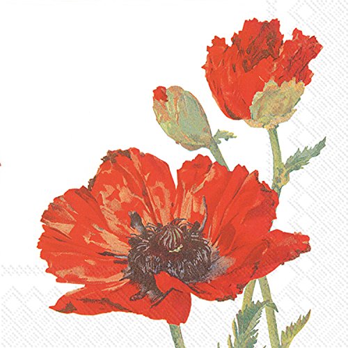 Ideal Home Range C522390 20 Count Poppy 3-Ply Paper Cocktail Napkins, Multicolor