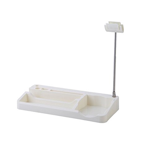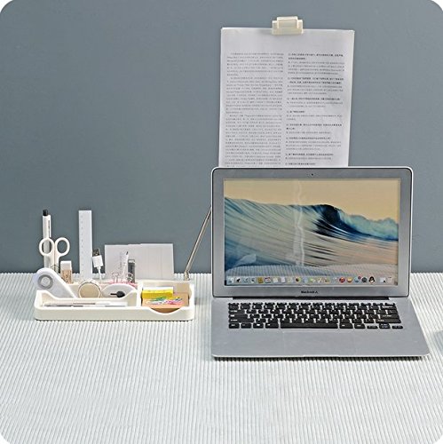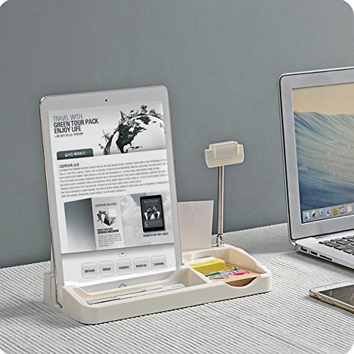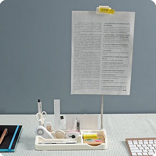 Chris.W Office Desktop Memo Storage Box / iPad/iPhone/Phone Stand / Penholder/Pencil/Business Cards Sundries Holder w/ Stretchable&Rotatable Document Clip (White)