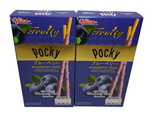 Glico Pocky Fruity Biscuit Stick Coated with Blueberry Taste (35 G. X 2 Boxes)