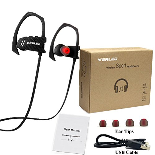 Bluetooth Headphones,Werleo Wireless V4.1 Bluetooth In-Ear Headset Super Bass Noise Cancelling Stereo Sports Earphones Sweatproof Earbud with Mic Hands Free Call for iPhone 7 Samsung S6 S7 iPad LG HTC