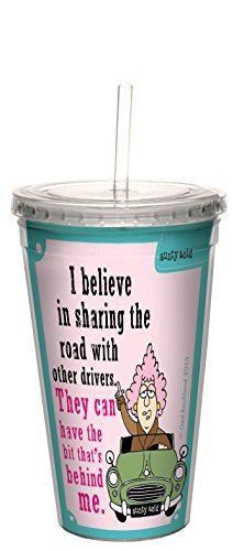 Tree-Free Greetings 16-Ounce Double-Walled Cool Cup with Reusable Straw, Aunty Acid Drive Behind Me (CC98577)
