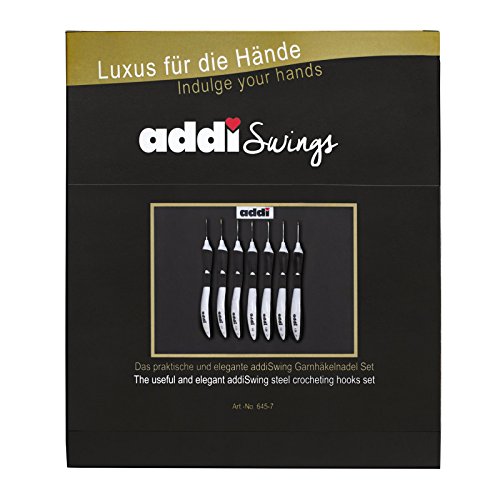 - Content: 7 addiSwings steel crocheting hooks (0.5mm, 0.6mm, 0.75mm, 1.0mm, 1.25mm, 1.5mm, 1.75mm)