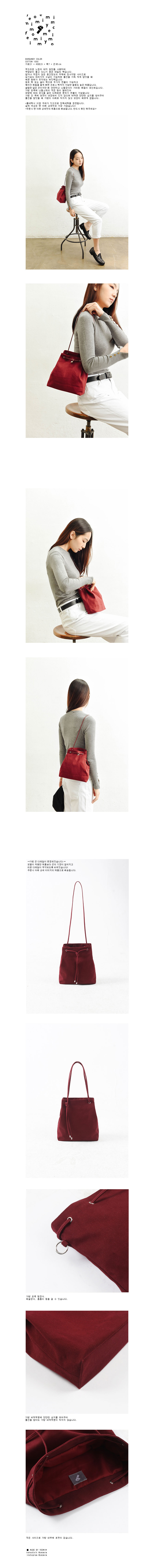 | BURGUNDY COLOR COTTON 100% 가로21 * 세로23 * 폭7 * 끈85 cm 부드러운 느낌의 피치 원단을 사용하여 부담없이 들고 다니기 좋은 데일리 백입니다. 얇거나 두껍지 않은 중간정도의 두께에 정사각형 사이즈로 보기보다 여러가지 수납이 가능하며 물건을 가득 차게 담았을 때 예쁜 형태가 유지되는 버킷백입니다. 토트 백 또는 숄더 백으로 두가지 연출이 가능하고 묶어진 매듭을 짧게 매면 크로스 백까지 가능한 활용도 높은 제품입니다. 슬림한 얇은 끈이지만 꽤 단단하고 니켈장식이 가미된 매듭이 포인트입니다. 가방 왼쪽에 니켈소재의 작은 링이 달려있어 취향에 따라 장식을 걸어 다채로운 분위기 연출이 가능합니다 가방 안 쪽에 포켓이 내장되어 있지 않으며 바닥엔 단단한 심지를 넣어주어 물건을 담았을 때 가방이 아래로 처지지 않고 모양이 예쁘게 잡힙니다. *물세탁시 이염 우려가 있으므로 단독세탁을 권장합니다. 실제 색상은 맨 아래 상세컷과 가장 가깝습니다* *주문시 맨 아래 상세컷의 제품으로 배송됩니다. 반드시 확인 해주세요!* |