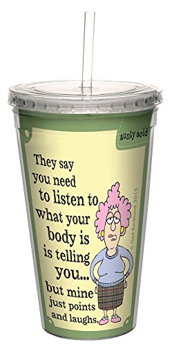 Tree-Free Greetings 16-Ounce Cool Cup with Reusable Straw, Aunty Acid Points And Laughs (CC98636)