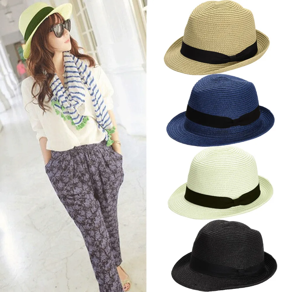| [해외]패션 모자 챙이 넓은 재즈 모자 여름 해변 일 밀짚 파나마 모자 Ribbow 밴드 태양 모자 |