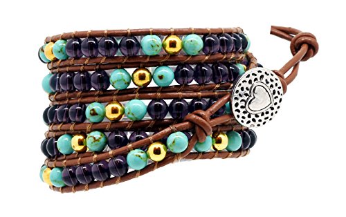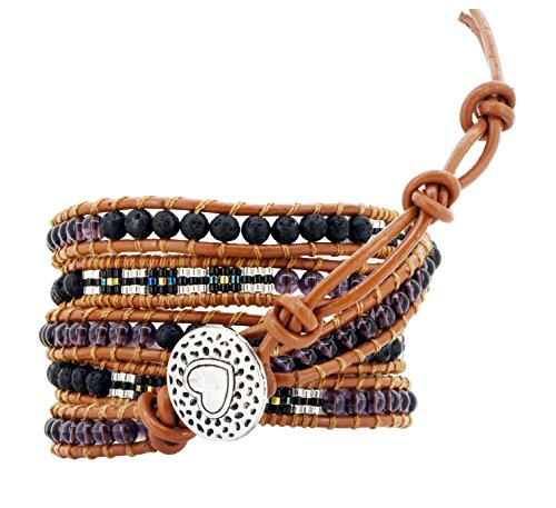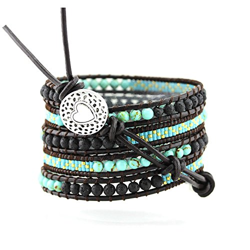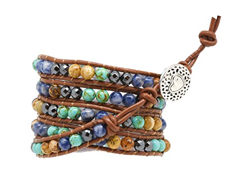 -. Binding : Jewelry -. Brand : Mandala Crafts -. Department : womens -. Feature : Long wrap leather bracelet; Free Mandala Crafts gift bag; / Total Length: about 42 Inches; Length of the bracelet with beads: About 36 inches; Length of the Buckle Cord Without beads: About 6 inches; Please make sure the length will fit you by measuring your wrist's circumference. It can also be used as a belt of anklet. / Width (wrapped 5 Times) About 1.75 inches; Width (wrapped 6 times); About 2 inches; it is a wide bracelet and please make sure this is not bulky to you; Lava Rock Bead Size: About 7mm; / Please note this bracelet mostly can wrap around your wrist about 5 times. Once you decide on the length of the bracelet you need, you can cut the extra cord at the end to shorten the bracelet. You can also untie the knots on the leather cord at the end of the bracelet and retie the knot to fit your wrist; / Please note the bracelet cord is made from cowhide leather. Cowhide leather has a slight odor of natural leather. The odor might exist especially after being packed in a sealed plastic bag before it reaches you. Though most people like the leather smell, it might be unpleasant to some people. Leaving it in a sealed container with baking soda will be very helpful to get rid of the odor if you think it is unpleasant. -. Label : Mandala Crafts -. Manufacturer : Mandala Crafts -. ProductGroup : Jewelry -. ProductTypeName : FASHIONNECKLACEBRACELETANKLET -. Publisher : Mandala Crafts -. Studio : Mandala Crafts -. Title : Womens Simulated Gemstones Beaded Leather Wrap Around Bracelet