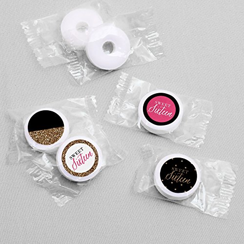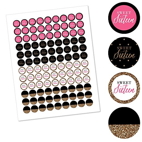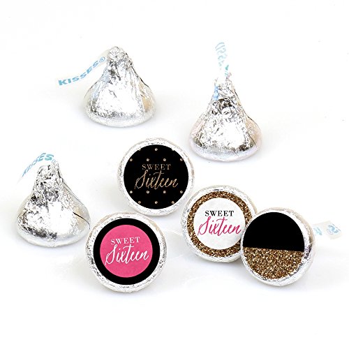 Chic 16th Birthday - Pink, Black and Gold - Round Candy Sticker Favors – Labels Fit Hershey’s Kisses (1 sheet of 108)