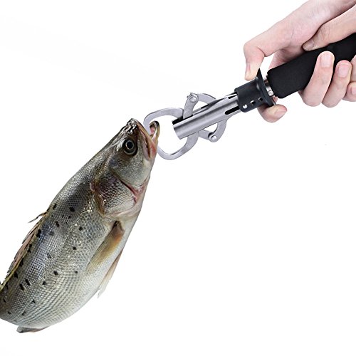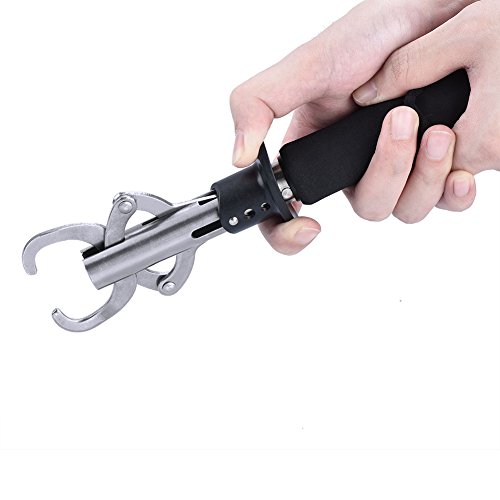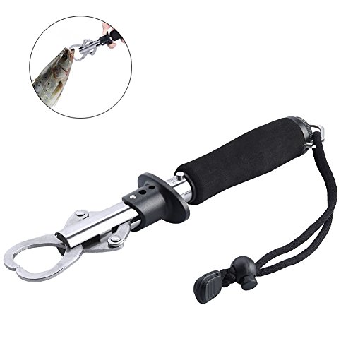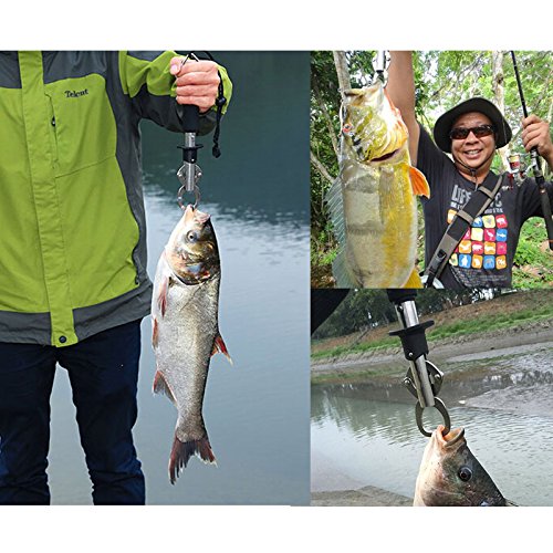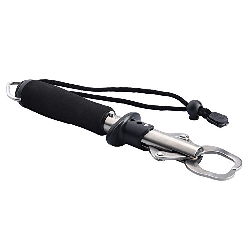 RUNACC Stainless Steel Fish Lip Gripper Grabber Grip Tool Fish Holder with Scale, Max Weighing 33lb/15kg, Black
