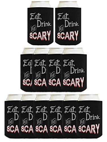 Funny Halloween Beer Coolie Eat Drink Be Scary Halloween Party Costume Accessory 12 Pack Can Coolie Drink Coolers Coolies Black