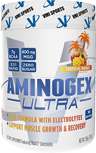 VMI Sports® Aminogex UltraTM, our powerful branched chain amino acids with betaine will stimulate new muscle growth, halt protein breakdown, and hasten recovery. Our best selling BCAA powder increases muscle growth, accelerates recovery, prevents muscle breakdown and is made using TRAACS® Electrolytes, for Hydration. FEATURES: • 7g BCAA • 2:1:1 Ratio • 400mg MGG • 1.25g Betaine • 3.5g Leucine ? Increase Muscle Growth ? Accelerate Recovery ? Prevent Muscle Breakdown ? Made with TRAACS® Electrolytes for Hydration