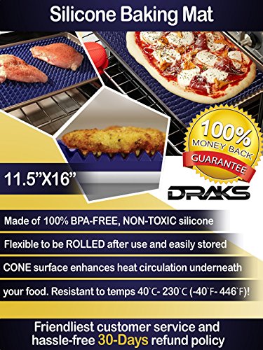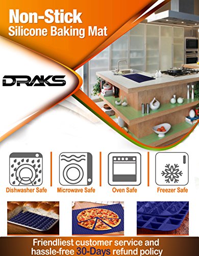 NO QUESTIONS 100% DRAKE MONEY BACK GUARANTEE: Taking pride in the quality and craftsmanship of our silicone baking liner, we are backing it with the friendliest customer service and hassle-free 30-Day refund policy, to help you buy with confidence! LOVE our silicone cooking mat, or your money back!