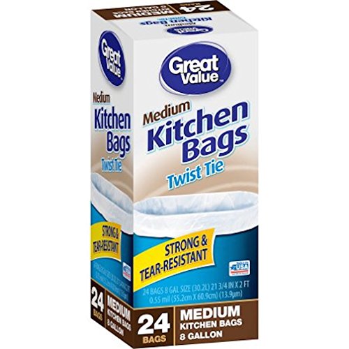 8 Gallon, 24 Count Twist Tie Small Kitchen Bags, White (24)