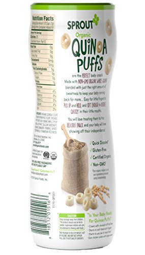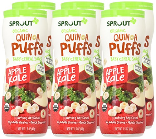 Sprout Organic Baby Food, Sprout Quinoa Puffs Organic Baby Food Snack, Apple Kale, 1.5 Ounce Canister, 6 Count
