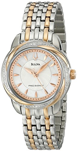 From the Precisionist Brightwater Collection. The most accurate watch in the world with a continuously sweeping second hand. In stainless steel with two-tone rose-gold and silver ion-plated finish, 20 diamonds individually hand-set on a swirl-pattern bezel, domed metalized crystal, multiple-layer white mother-of-pearl and silver-white dial, continuously sweeping second hand, rose-gold accents, secure double-pusher deployment buckle and water resistance to 30 meters.Feature