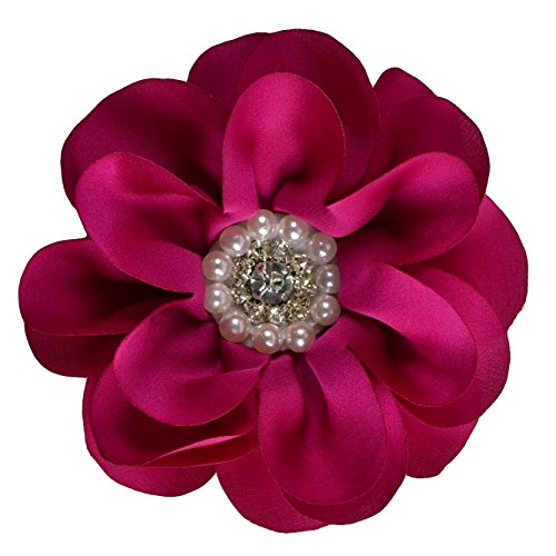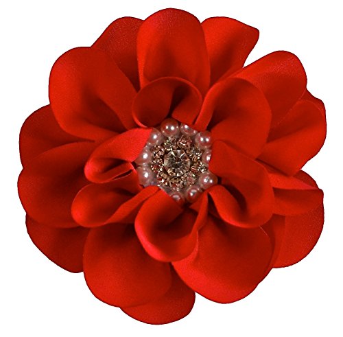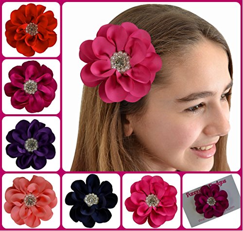 4" handmade satin flower hair clip. The center of the flower features a cluster of sparkling rhinestone attached to a 1 3/4" alligator hair clip. Many colors available!Feature