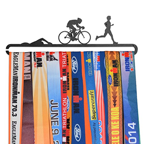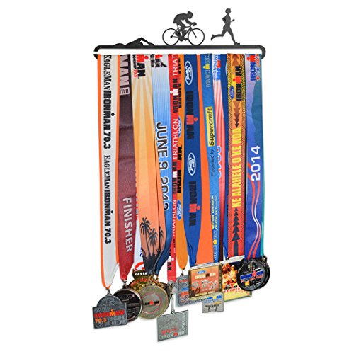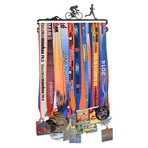TRIATHLON, SWIM BIKE AND RUN! Training and finishing a triathlon is quite the achievement! Simply, slide up to 24 medals on the bottom bar to display. More medals? No problem! Our MedalART Hanger Extension Bar holds up to an additional 24 medals and can be purchased separately from Gone For a Run or Amazon.