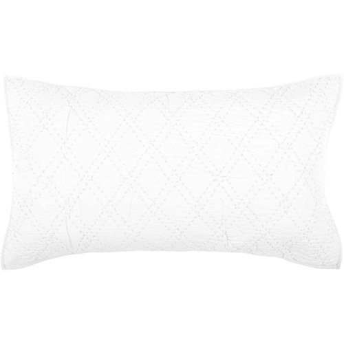 - Double diamond hand-quilting on soft fog white cotton cambric fabric