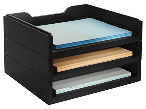 Bindertek Stacking Wood Desk Organizers, 3 Letter Tray Kit, Black