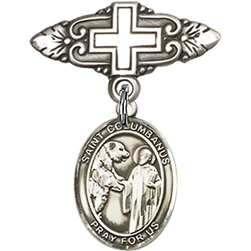 -. Title : Sterling Silver Baby Badge with St. Columbanus Charm and Badge Pin with Cross 1 X 3/4 inches
