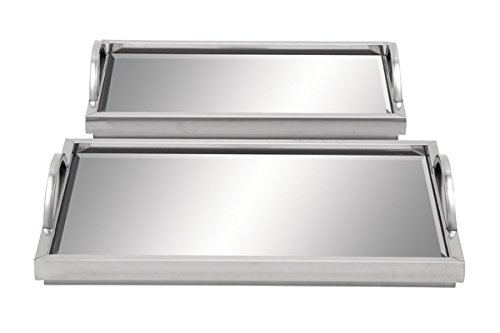 Deco 79 51744 Ss Mirr Tray (Set of 2), 18", 16"