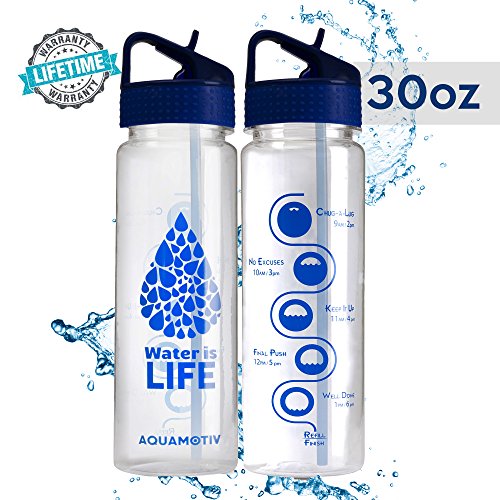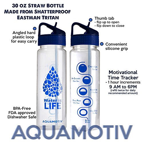 30 oz Flip Straw "Water is Life" Inspirational Quote Water Bottle with Motivational Time Tracker | BPA-Free Fitness Sports Bottle ( 890 ml) | 10% of Proceeds Goes To Clean Water Projects
