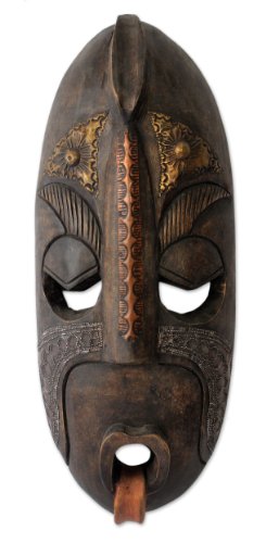 NOVICA Decorative Large Sese Wood Mask, Brown, 'True Courage'