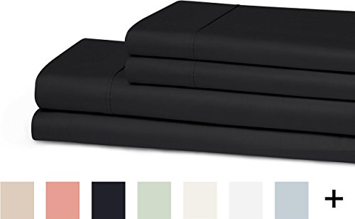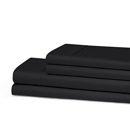 Superior 300 Thread Count, 100% Cotton Antimicrobial Twin XL Sheet Set, Solid Black