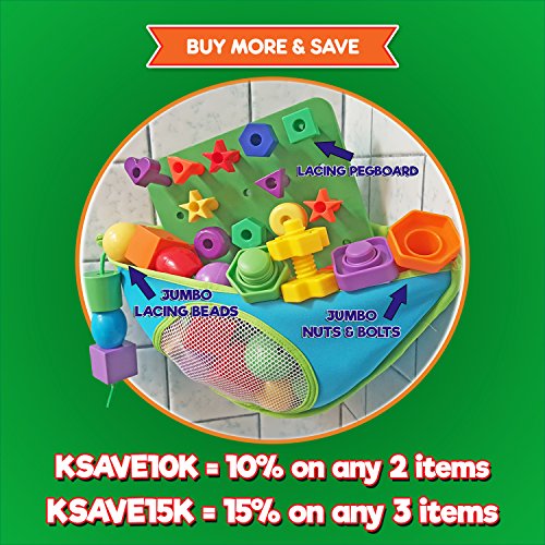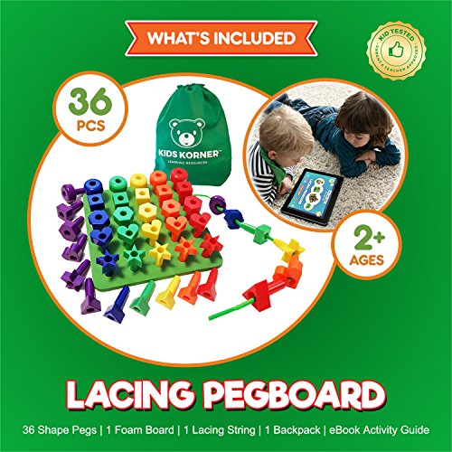 Kids Korner LACING COLORS & SHAPES SORTER PEGBOARD SET with Rainbow Jumbo Lacing Beads An interactive shapes puzzle for toddlers to learn the basics!