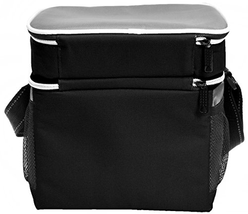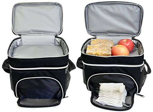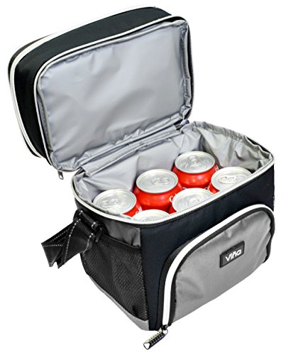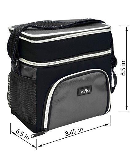 Insulated Lunch Cooler Bag, Vina Small Adult Dual Compartment Reusable Bento Lunch Box Tote with Shoulder Strap for Men and Women, Black