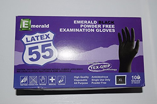 Emerald 1004 Black Latex Powder-Free Exam Gloves with Textured Grip, 10 Boxes of 100, Total 1000 Gloves Size: X-Large,