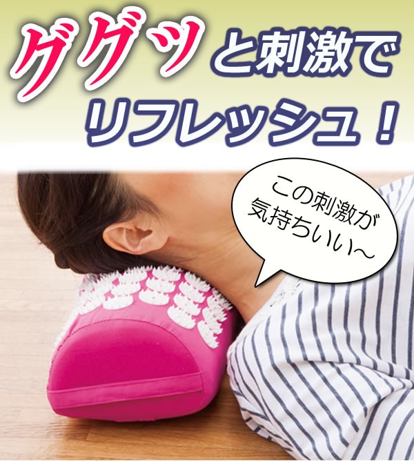 | <h1>ググッと首スッキリクッションでリフレッシュしませんか?ググッと首スッキリクッションの表面の細かい凹凸が疲れた首、腰、ふくらはぎ、足裏のツボを押して気持ちいい刺激!お休み前などリラックスタイムにググッと首スッキリクッションおすすめ♪首/マッサージ/リラックス/クッション/ツボ押し/リフレッシュ/凹凸/安眠</h1> |