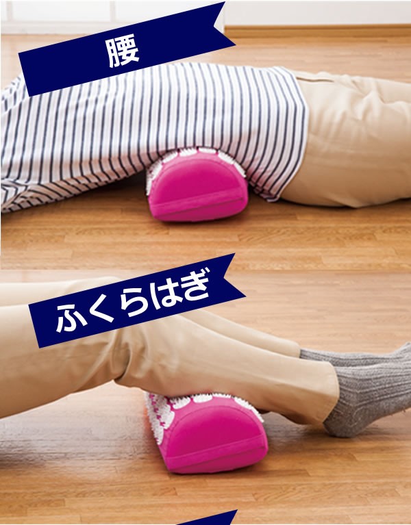 | ググッと気持ちいい~刺激でリフレッシュ!マッサージできるクッションです。表面の凹凸が首、腰、ふくらはぎ、足裏などに使ってリフレッシュできます! |