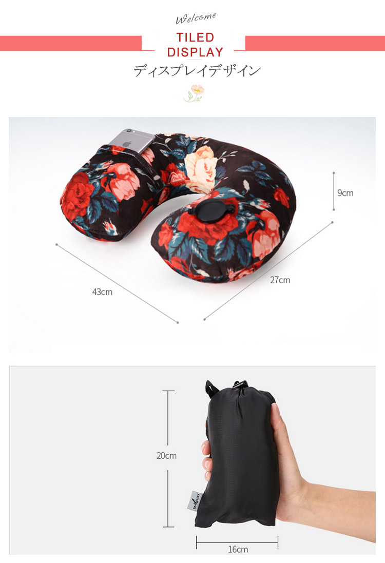 | 長距離の空の旅、陸の旅のお供に!長旅に疲れの軽減に不可欠なエアーピロー!また移動時だけではなく、アウトドアでのクッション・枕や自宅でリラックスしたい時にも非常に便利です。 | |