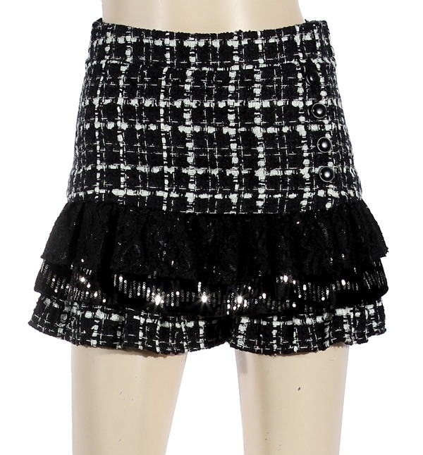 EGOIST, 레이스 프릴 디테일로 러블리한 느낌을주는 트위드 큐롯팬츠입니다