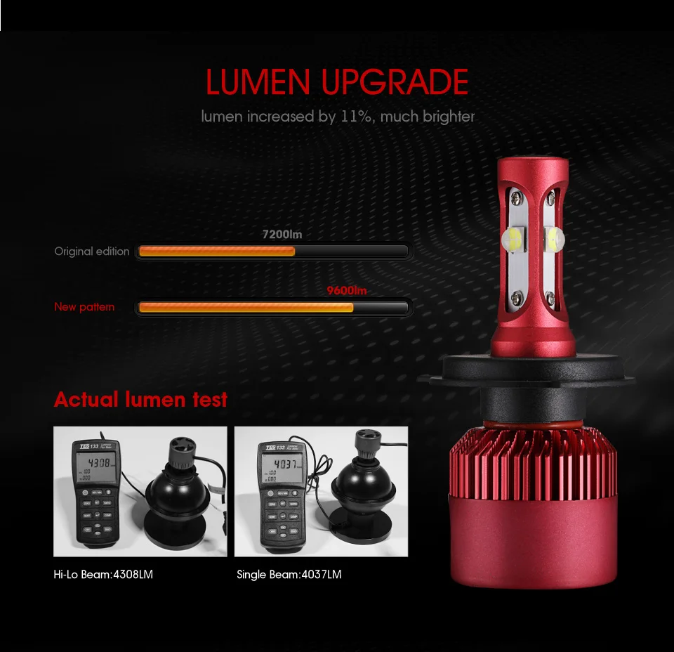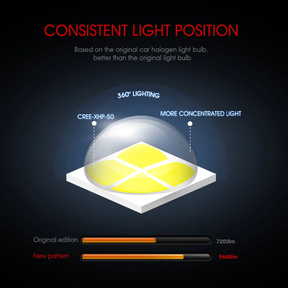 Luminous Flux::9600lm/set(4800lm/bulb) car headlight