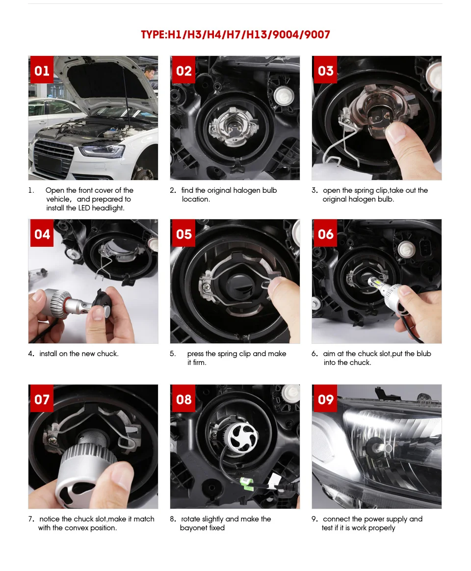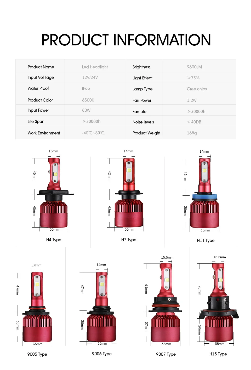 Plug Type: :H4/H7/H11/H13/9005/9006 Car led headlamp bulbs