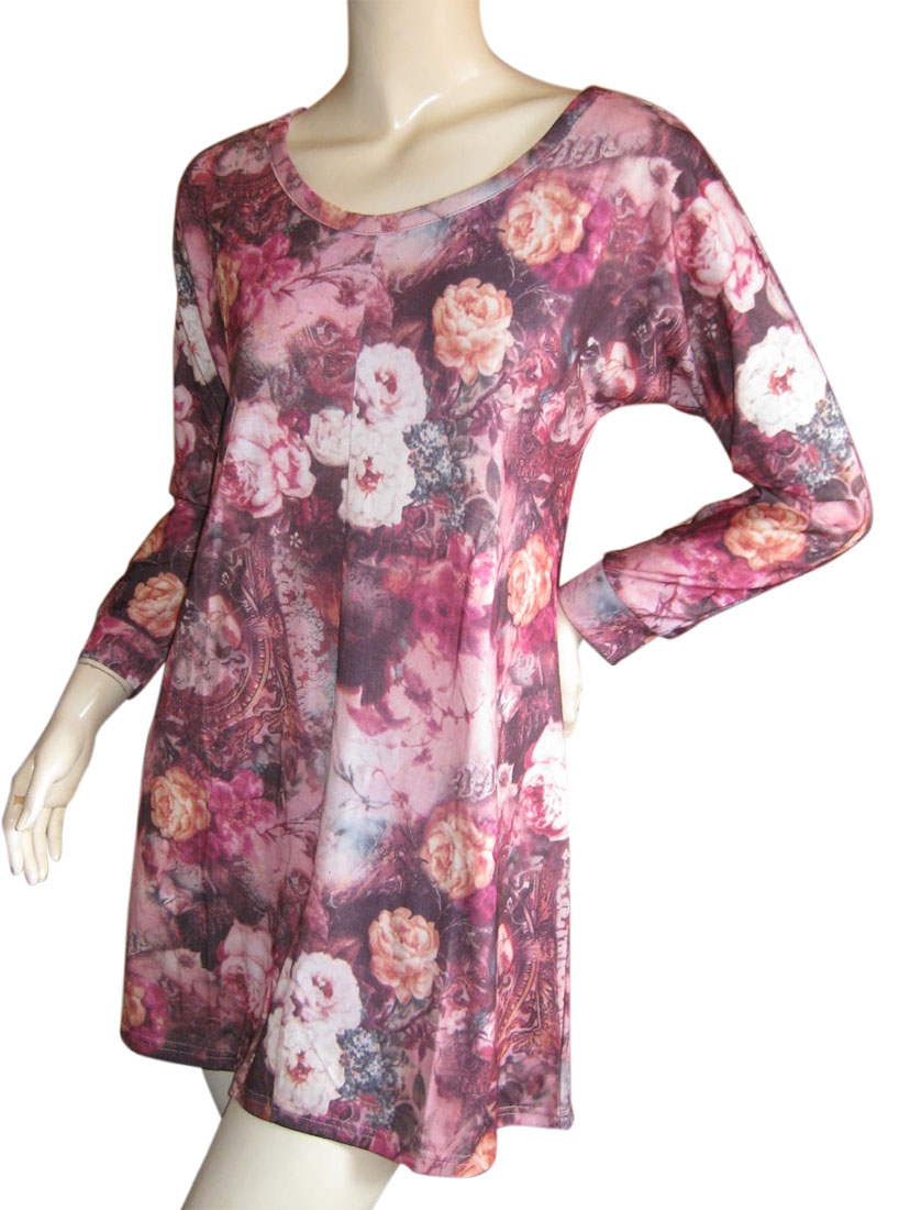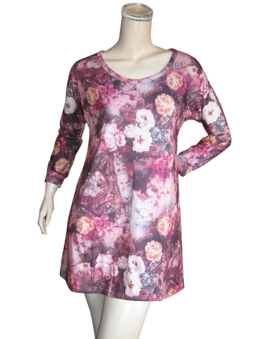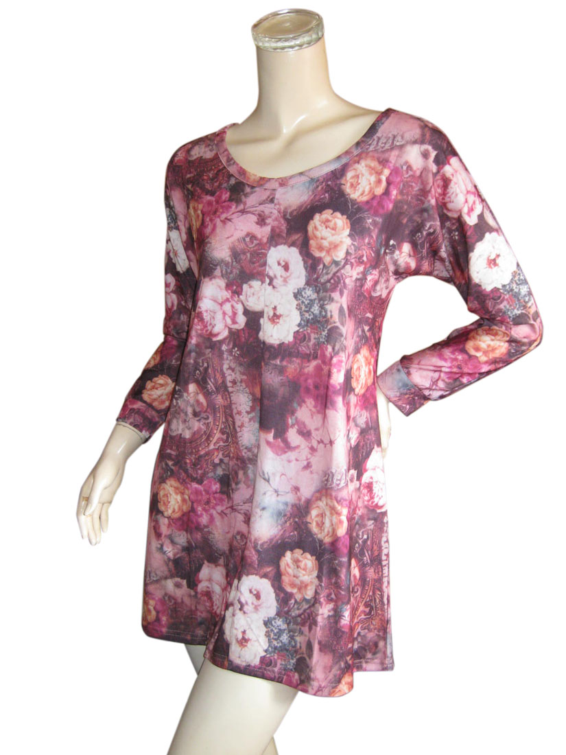 ワンピース チュニック チュニックワンピ ばら バラ ローズ 長袖 Aライン 春 秋