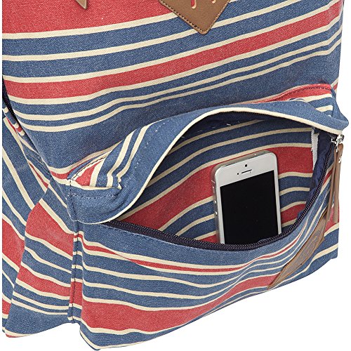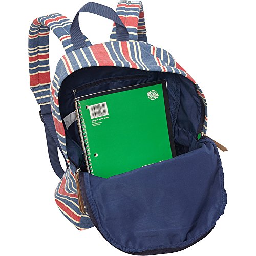 -. Feature : Cotton canvas backpack featuring faux-leather trim and zipper pulls / Padded and adjustable shoulder straps / Pockets: 1 interior zip, 1 exterior