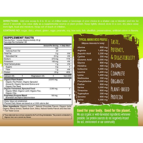 Includes 1 (2lb Tub) PlantFusion Organic Chocolate Protein & Fermented Foods Powder, Non-GMO