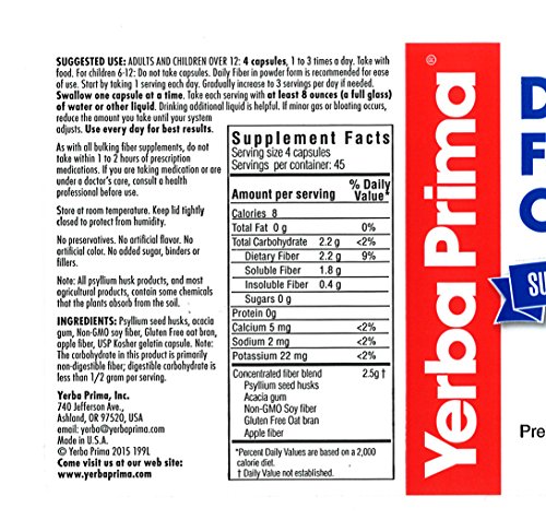 Product DescriptionDaily Fiber Caps By Yerba Prima - 180 Cap, 3 Pack0