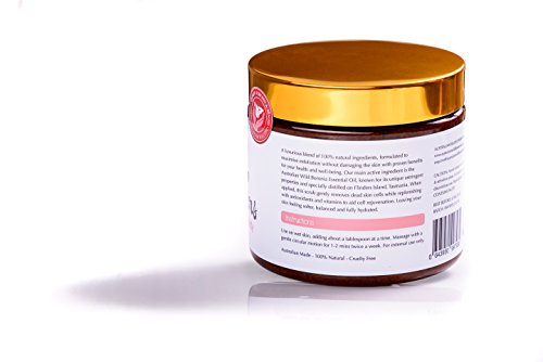 At Australian Wildflowers, our ingredients are carefully sourced and chosen for their natural skin-improving properties. Australian Wildflowers body salt & sugar scrub is a luxurious blend of 100% natural ingredients with proven benefits for your health and well-being. Australian made our main active ingredient is the Australian wild Boronia essential oil. Known for its unique astringent properties, the wild Boronia plants are grown and specially steam distilled on flinders island off the coast of northeastern Tasmania in Australia. We are careful to use cruelty-free ingredients and methods, so you can feel good about purchasing from Australian Wildflowers. Beautiful results our salt and sugar scrub gently removes dead skin cells while replenishing with antioxidants and vitamins to aid cell rejuvenation, leaving your skin feeling softer and smoother with an even tone. Your skin will feel non-greasy, balanced, and fully hydrated. In addition, our great-smelling natural exfoliating scrub may help to clear the aura of any negative vibrations. Our antioxidant body scrub is sure to provide a rejuvenating, spa-like experience and deliver beautiful, natural results ingredients:*Australian Celtic sea salt, walnut shell powder, coconut desiccated, brown cane sugar, hempseed oil, Murray river salt, *jojoba beads, *Australian macadamia oil, Australian sandalwood seed oil, *lemon myrtle crushed leaves, Australian sandalwood powder, lemon myrtle essential oil, macadamia nut meal, wild Boronia essential oil, myrrh essential oil, p-anisic acid (natural) *organic please note: This product is 100% natural and may vary in color, consistency, and aromatherapy. Use in conjunction with our wild Boronia body butter for maximum moisturizing effect.Feature