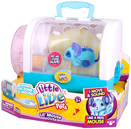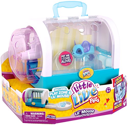 The Little Live Pets Lil' Mouse House is the perfect place for your Lil Mouse to play and live! Watch your mouse go in and out of the door and then scurry around the play wheel! It’s all happening in the Lil' Mouse House! Two to collect. Includes one mouse, one cage, one track, 3 LR44 batteries and an instruction booklet.Feature
