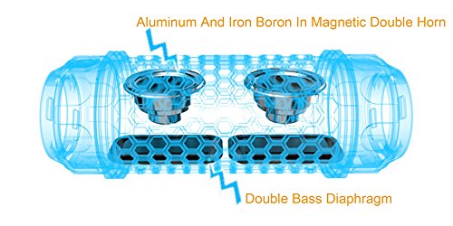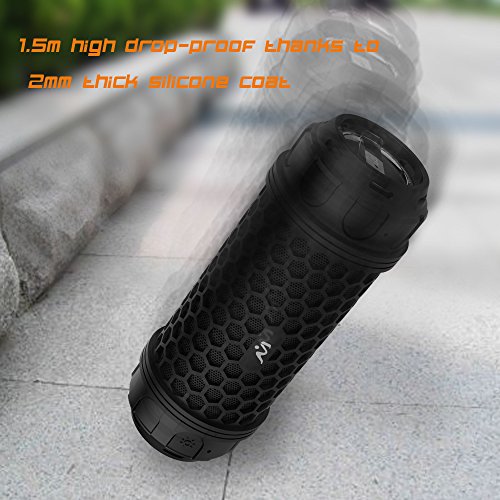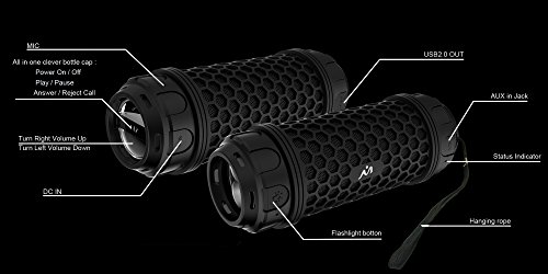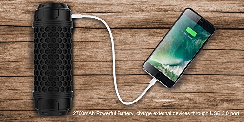 - MULTIFUNCTIONAL PORTABLE SPEAKER,IT IS MORE THAN A SPEAKER: IT CAN BE A FLASHLIGHT, torch with 3 leds for night use, help you in emergency with SOS rescue signal! IT CAN BE A SPEAKERPHONE,BUILT-IN MIC for handsfree speakerphone from Smartphones and iPhones. IT CAN ALSO BE A BATTERY CHARGER, up to 6 hours continuous music playback or call time and 250 hours standby time powered by a built-in high capacity 1900mAh rechargeable polymer Li-ion battery .