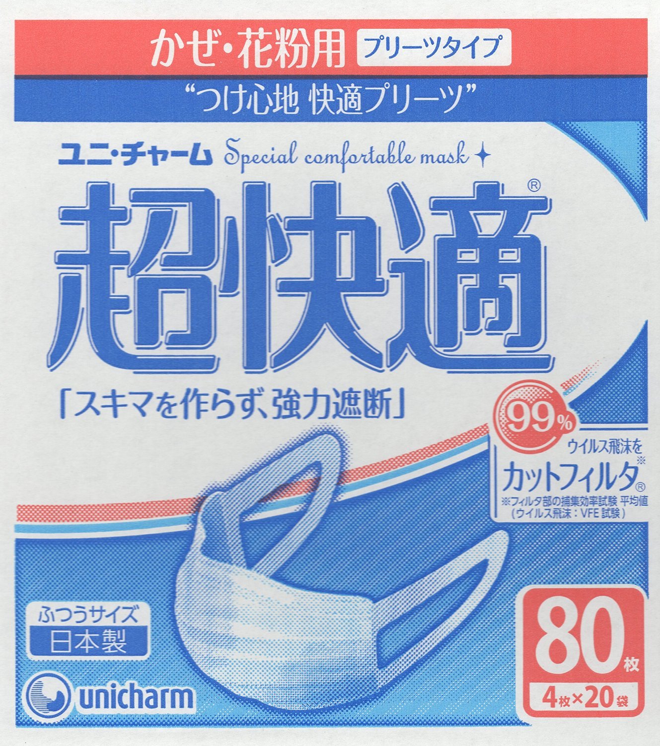 Japan Facemask - (Made in Japan PM2.5 corresponding) pleat type usually 80 sheets size for Uni-Charm super comfortable mask wind pollen ( *AF27* unicharm) *AF27*