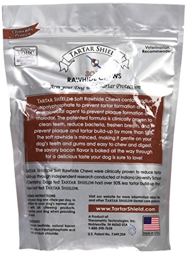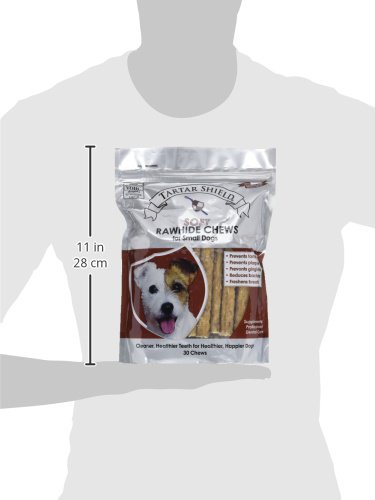Tartar Shield Soft Rawhide Chews are coated with a unique mixture containing sodium tripolyphosphate to prevent tartar formation and an antimicrobial agent to prevent plaque formation and malodor