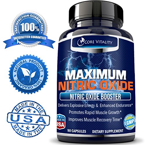 -. Feature : PREMIUM TOP-RATED NITRIC OXIDE BOOSTER OR YOUR MONEY BACK - Our proP.R.Ietary formula contains 2,400mg of Nitric Oxide boosting amino acids including L-Arginine and L-Glutamine, guaranteed to increase nitric oxide production to help your body build muscles, increase muscle size, strength, endurance, and will take your workouts to the next level! / PROMOTES RAPID MUSCLE GROWTH - Maximum Nitric Oxide Booster promotes larger and longer lasting pumps, makes muscles tighter and stronger, and fitness experts that have taken our product reported feeling "pumped" all day long. / IMPROVES WORKOUT RECOVERY TIME - Maximum Nitric Oxide Booster increases nitric oxide production in blood vessels. This increases blood flow to every part of your body and as a result more blood reaches the muscles and tissues and carries the nutrients you need to gain, grow, and recover. Enhanced Male Performance - Another added benefit of nitric oxide is better blood flow to every part of your body from your head to toes. / DELIVERS EXPLOSIVE ENERGY & ENHANCED ENDURANCE - Maximum Nitric Oxide Booster optimizes the body's ability to provide fuel and oxygen to muscles during strenuous workouts, helping athlete's last longer with less pain and soreness and build up more lean body mass. / 100% MONEYBACK GUARANTEE - Core Vitality's Maximum Nitric Oxide Booster is 100% safe and natural. All of our ingredients are listed on the label so you can be assured you are getting a safe product. Our nitric oxide supplement is made in the USA under strict GMP guidelines. We are so confident that you'll love this product that we offer a 100% MONEY-BACK GUARANTEE, no questions asked.