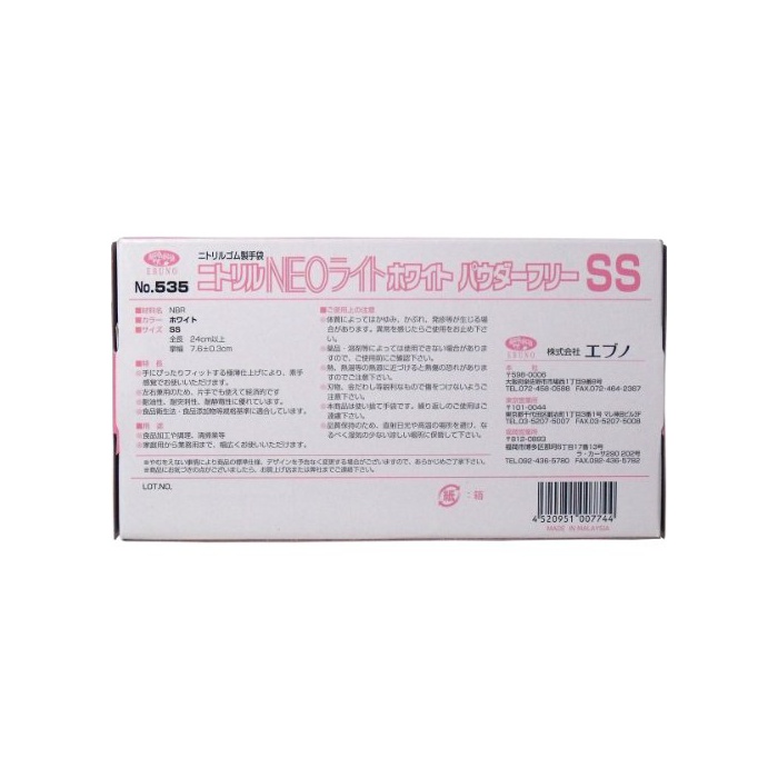 원본상품명: ニトリル手袋 パウダ?フリ? ホワイト SSサイズ